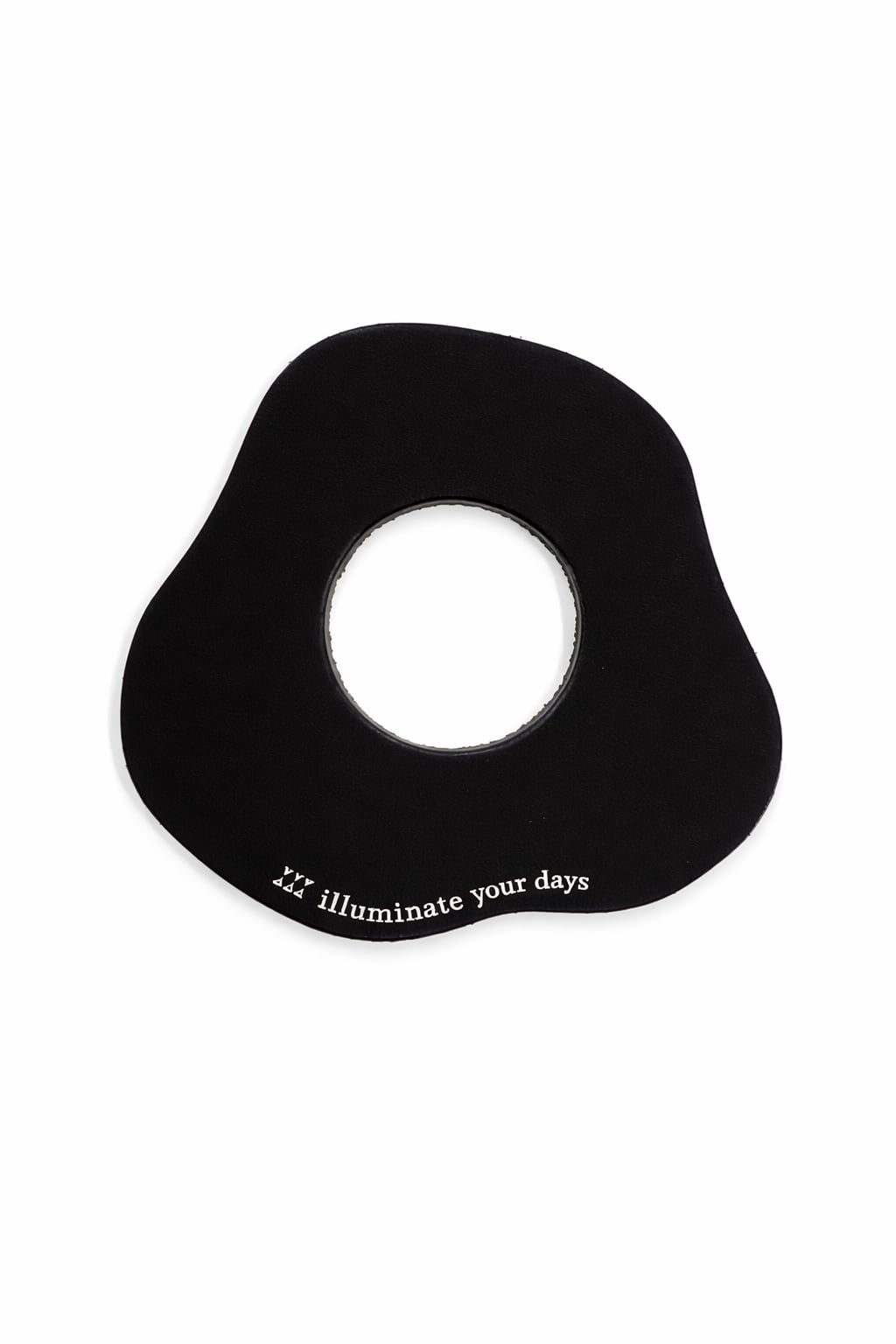 揺らぎにそっと寄り添う、ユニークな佇まい。中央の穴がユラグラスの丸い底にぴたりとフィットし、揺れが気になるシーンでも、ユラグラスを安定してお使いいただけます。